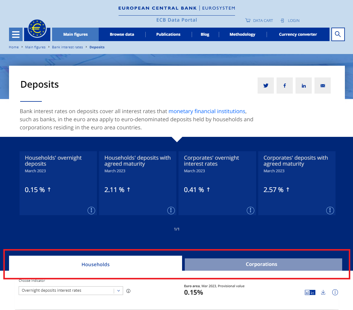 First you can select which indicator groups (e.g. Corporations or Households) you wish to look at more closely by clicking on the corresponding tab.